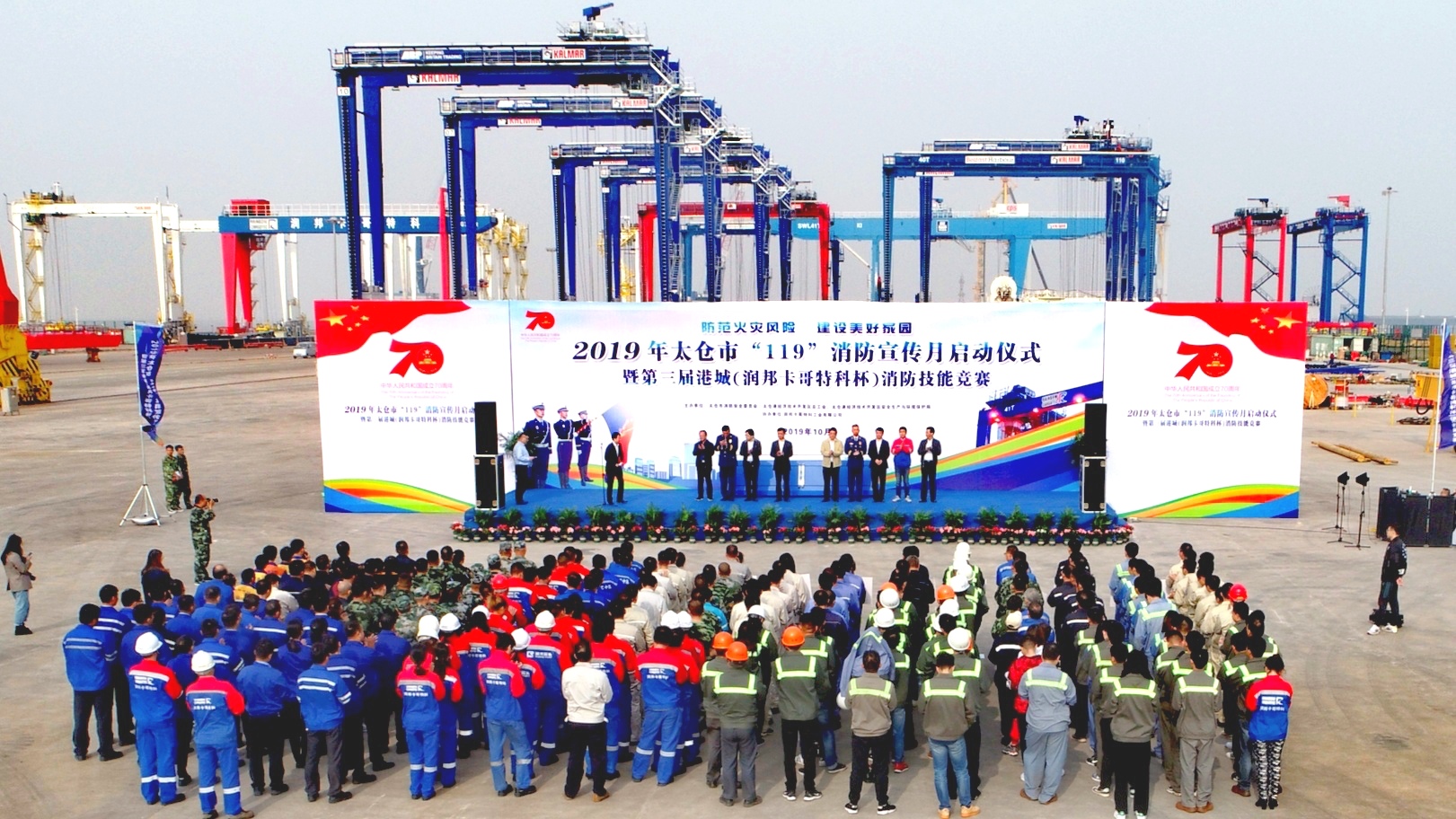 近日,由太倉市消防安全委員會、太倉港經濟技術開發區總工會、太倉港經濟技術開發區安全生產與環境保護局主辦,潤邦卡哥特科協辦的“2019 年太倉市‘119’消防宣傳月啟動儀式暨第三屆港城(潤邦卡哥特科杯)消防技能競賽”活動在潤邦卡哥特科舉辦,太倉市、太倉港經濟技術開發區管委會各部門領導及港區部分企業出席了此次活動。